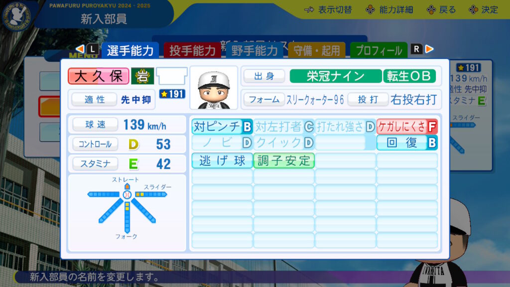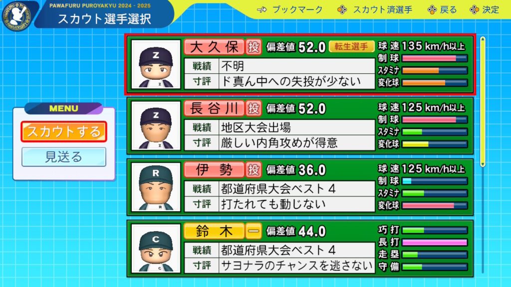 スカウト方針として今まで避けてきた「一芸特化」と「様々な選手」の地区に出向いて行きたいと思います。そして、多少パラメーターは低くても特殊能力にはとことんこだわります。